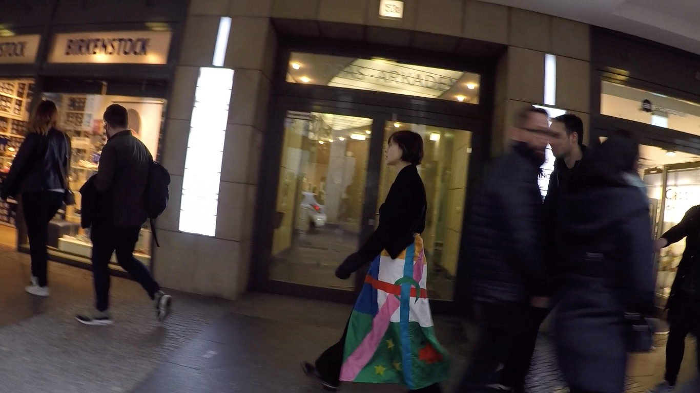 What turns a few colorful symbols on a pieces of fabric into a flag? When does a cloth become a political symbol? A performative walk with an eclectic flag investigates people's reaction towards an invented national symbol.