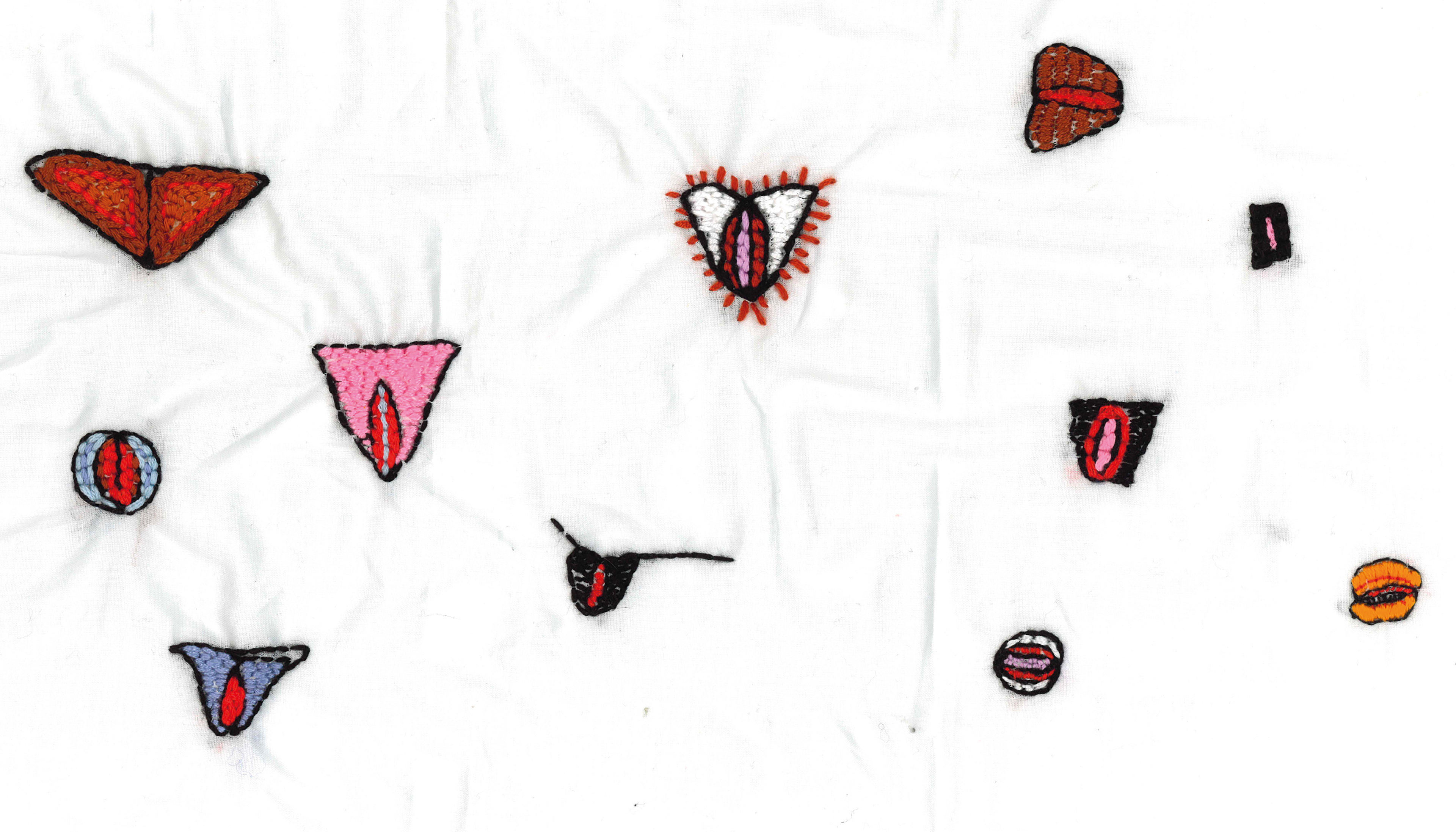 „Ficken ist Ökosophie“, an examination of the depictions of the vulva in Helga Goetze's embroidered pictures through embroidery and reading, © Lea Wittich, 2024